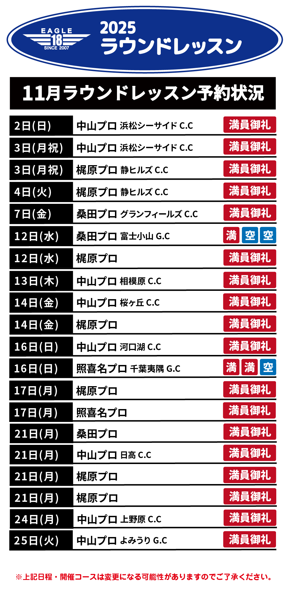 初めての方でもラウンド承りますが、事前に当アカデミーでレッスンを受けてからのラウンドをオススメしています。