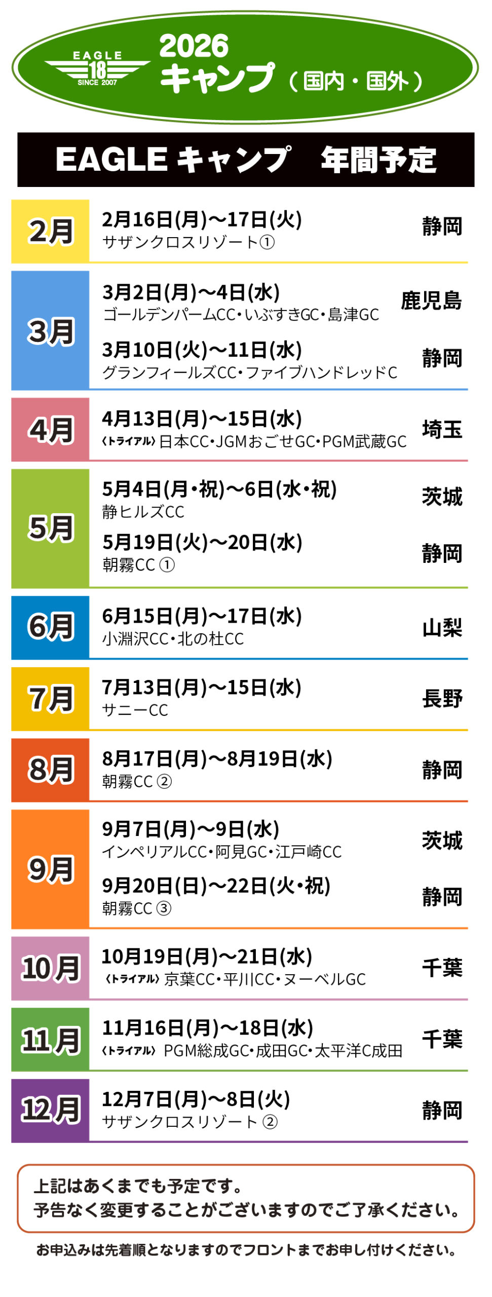 ※上記日程・開催コースは変更になる可能性がございますのでご了承ください。